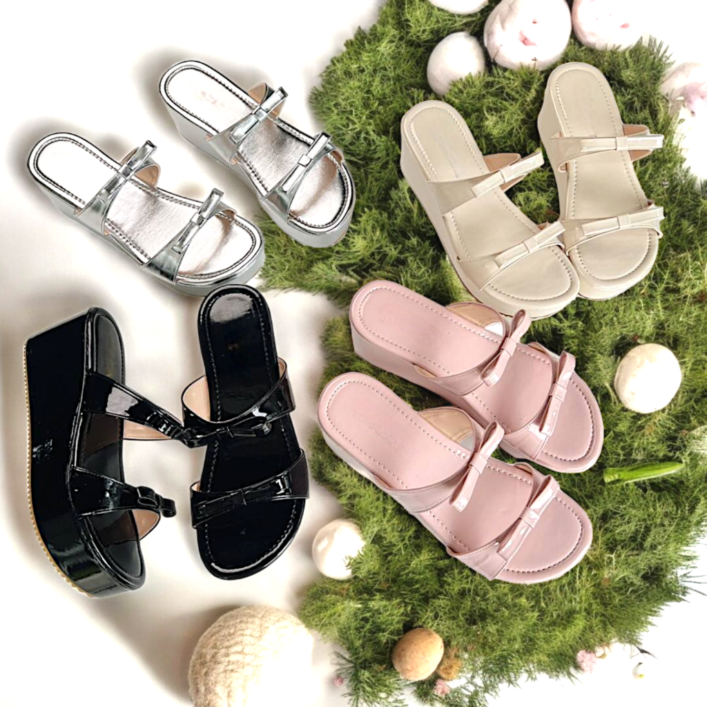 รองเท้าแฟชั่น พื้นเต็มส้นสูง 2.5 นิ้ว น้ำหนักเบา แบบสวมคาด 2 เส้นแต่งโบว์เล็กๆน่ารัก size 36 ถึง 40 รุ่นนี้หน้าเท้ากว้างใส่ได้นะคะ ทรงสวยใส่ได้ทุกโอกาส